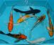 Очень красивое ассорти из ярких не похожих друг на друга вуалевых капров кои.
